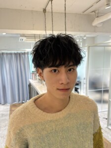 パーマやカール感のあるスタイルはワックスを馴染ますだけでカッコよくなります!